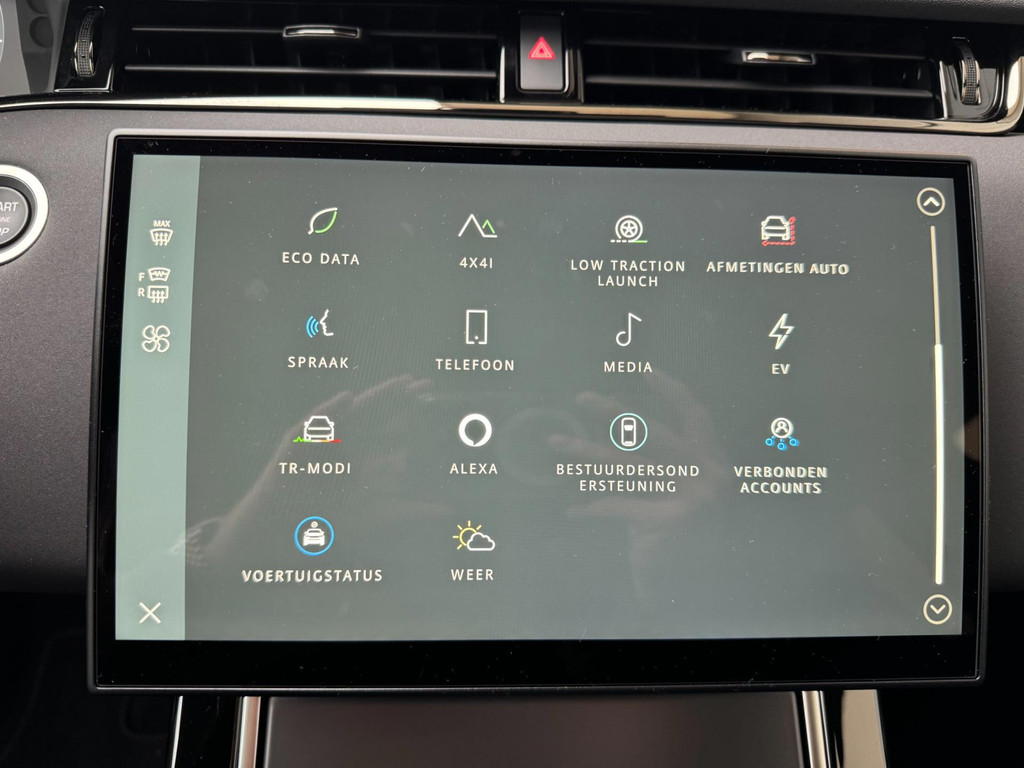 Pas de interface van uw cockpit moeiteloos aan. Het is mogelijk door het digitale dashboard in deze auto. Een vergeten muurtje, een verborgen paaltje? Dat gebeurt niet meer, dankzij de achteruitrijcamera. Adaptive cruise control is veilig en comfortabel. De snelheidsregelaar houdt automatisch afstand tot het voertuig dat voor u rijdt. De hoorbare sensatie van het high performance audiosysteem is een ervaring op zich. Klik de smartphone in de houder en de draadloze telefoonlader zorgt voor een volle accu. Ook is de Land Rover uitgerust met: navigatiesysteem, achteropkomend verkeer waarschuwing, electronic climate control, DAB ontvangst, regensensor en keyless entry.