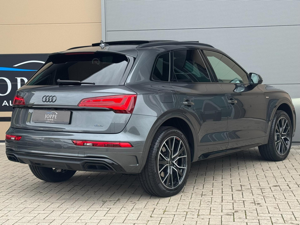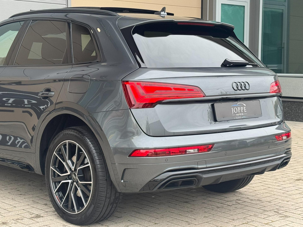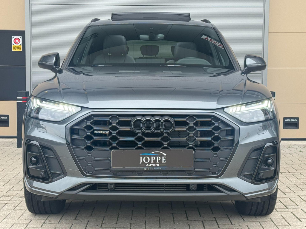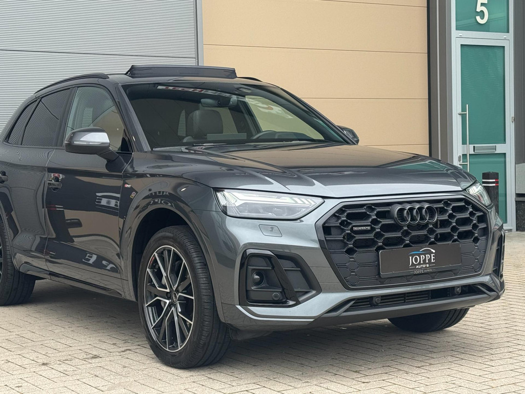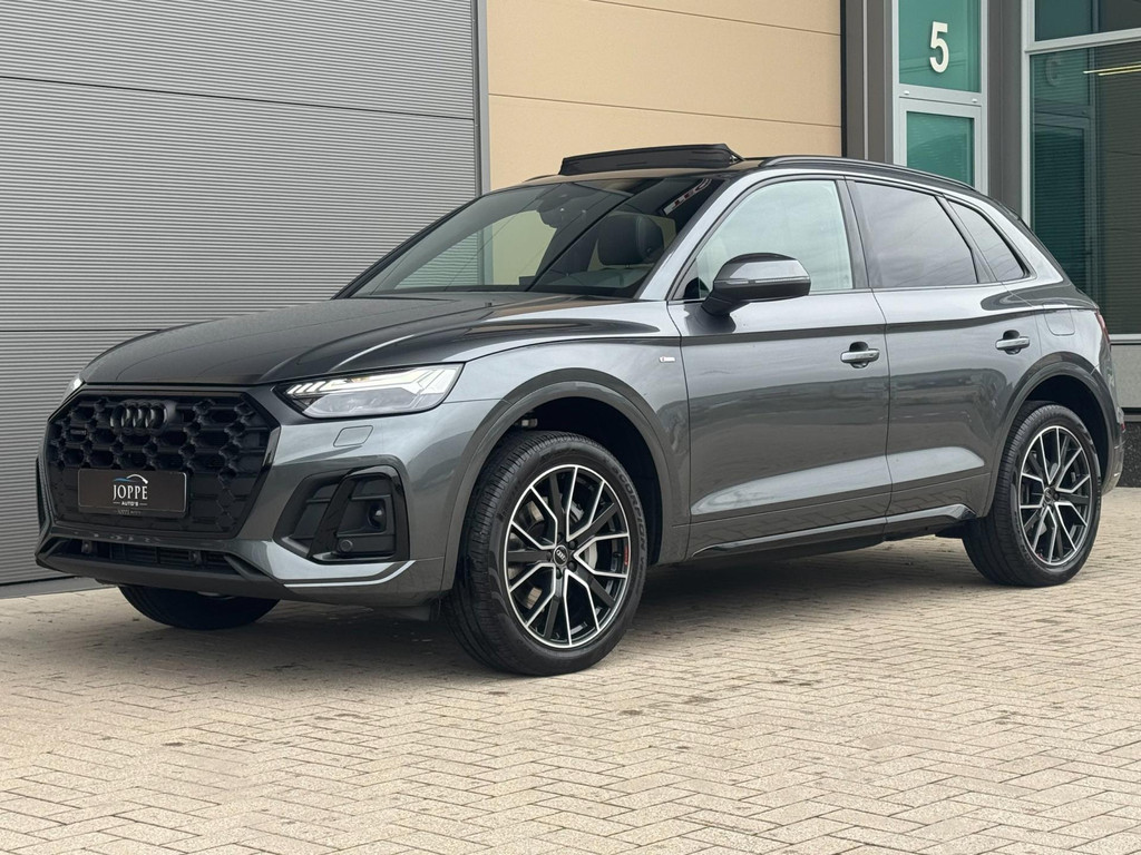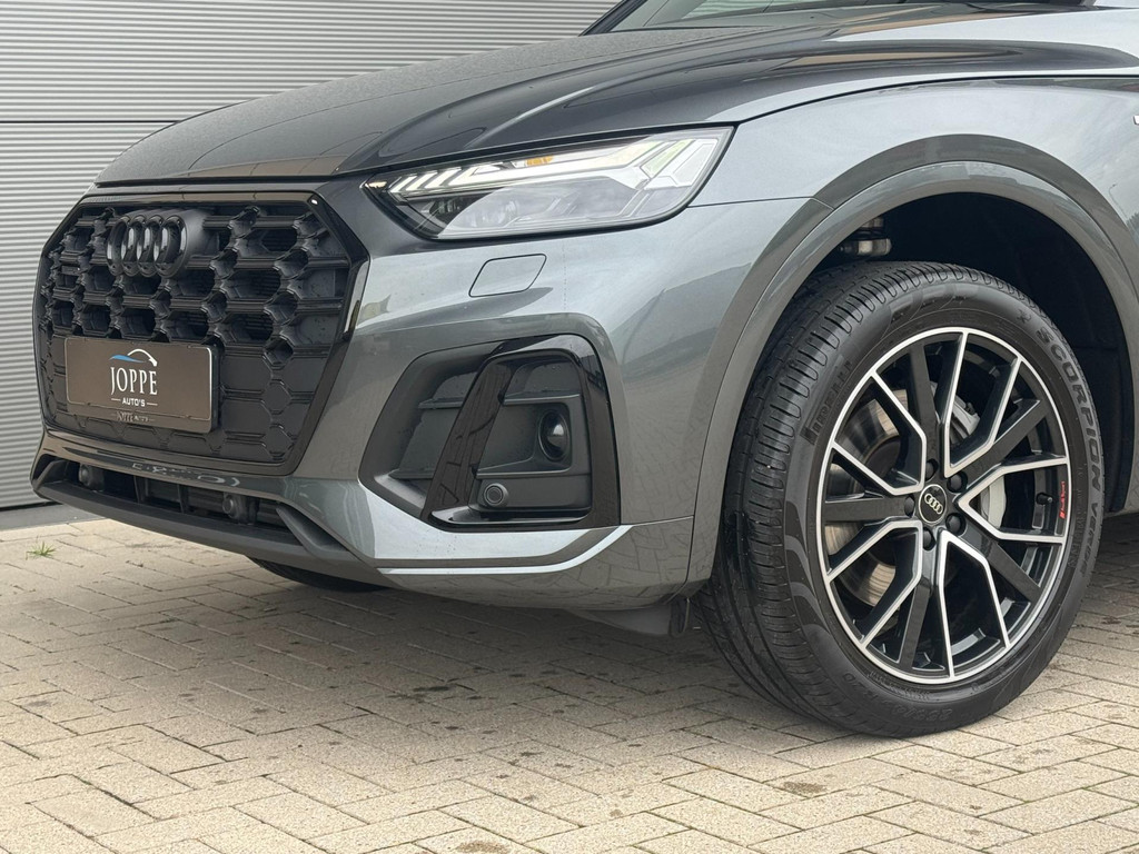 Dynamische styling, zorgvuldig afgewerkt met fraaie materialen en ontworpen met oog voor detail. De Audi Q5 is van binnen en van buiten een toonbeeld van Duits design. S-Line styling vertegenwoordigt de overtreffende trap in smaakvolle sportiviteit. Een krachtige motor geeft deze auto zijn sportieve prestaties. Lederen bekleding is in deze rijk uitgeruste auto ook aanwezig. 's Winters komen de verwarmbare voorstoelen heerlijk van pas. Rijden met pit? Geen punt! De sportstoelen geven steun en stevigheid! Dankzij het elektrisch bediende glazen panoramadak lijkt het of u altijd met open dak rijdt. Een praktische extra is de elektrisch bedienbare achterklep die opent en sluit met een druk op de knop. Perfect zicht bij nacht en slecht weer? Dat leveren de koplampen met matrix LED-verlichting. De uitmonstering van deze auto wordt gecompleteerd door onder meer 20 inch lichtmetalen velgen, halflederen bekleding, warmtewerend glas, in delen neerklapbare achterbank, LED-achterlichten en verstelbare lendensteunen.