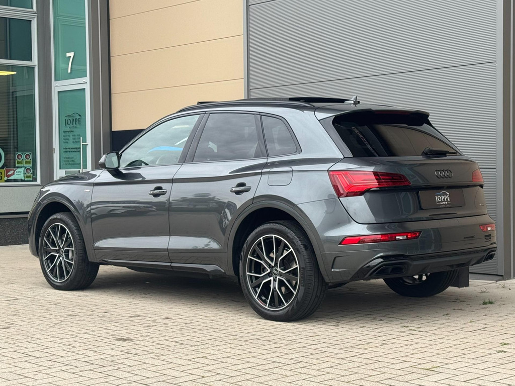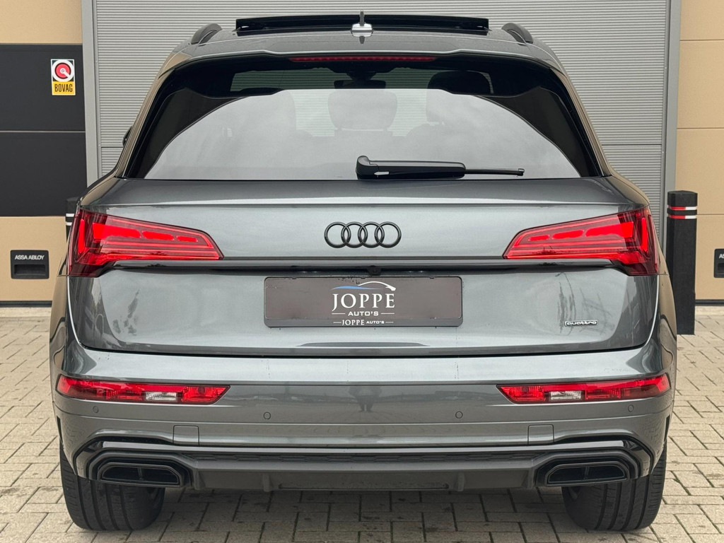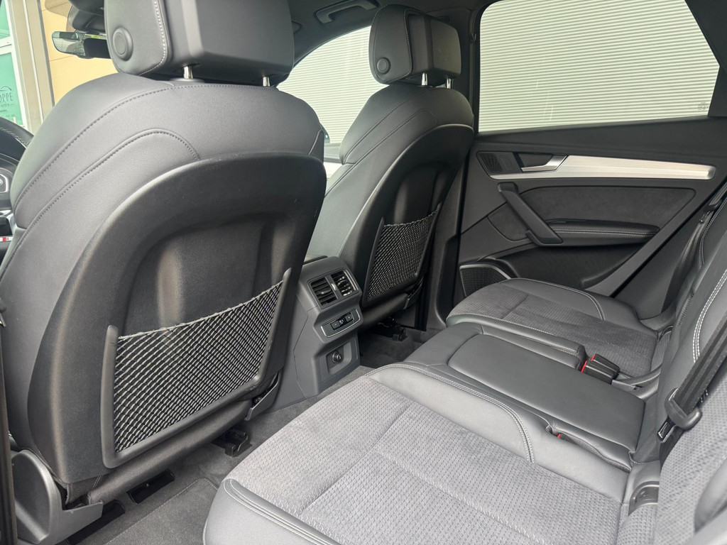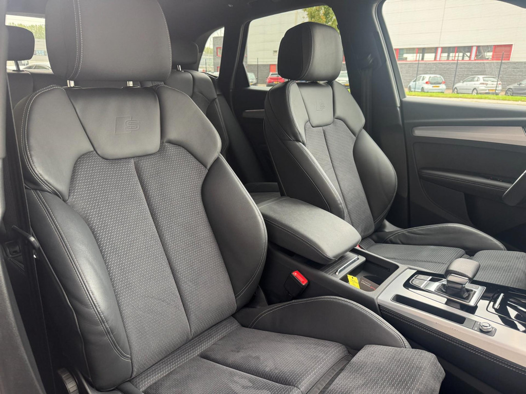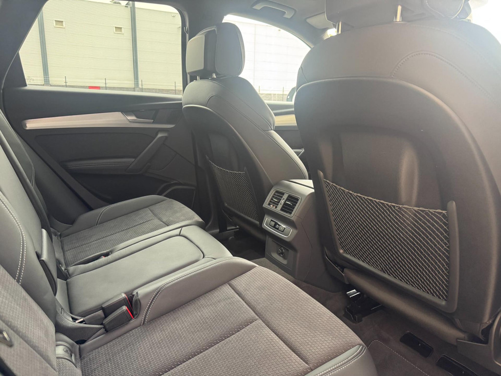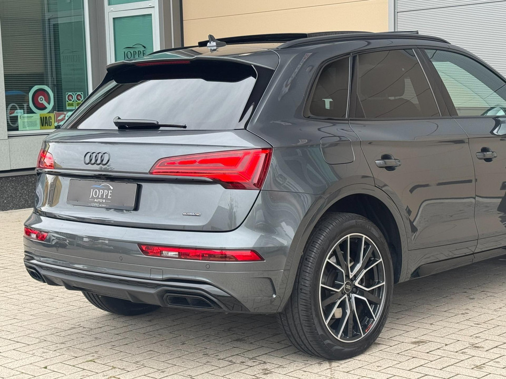 Dynamische styling, zorgvuldig afgewerkt met fraaie materialen en ontworpen met oog voor detail. De Audi Q5 is van binnen en van buiten een toonbeeld van Duits design. S-Line styling vertegenwoordigt de overtreffende trap in smaakvolle sportiviteit. Een krachtige motor geeft deze auto zijn sportieve prestaties. Lederen bekleding is in deze rijk uitgeruste auto ook aanwezig. 's Winters komen de verwarmbare voorstoelen heerlijk van pas. Rijden met pit? Geen punt! De sportstoelen geven steun en stevigheid! Dankzij het elektrisch bediende glazen panoramadak lijkt het of u altijd met open dak rijdt. Een praktische extra is de elektrisch bedienbare achterklep die opent en sluit met een druk op de knop. Perfect zicht bij nacht en slecht weer? Dat leveren de koplampen met matrix LED-verlichting. De uitmonstering van deze auto wordt gecompleteerd door onder meer 20 inch lichtmetalen velgen, halflederen bekleding, warmtewerend glas, in delen neerklapbare achterbank, LED-achterlichten en verstelbare lendensteunen.