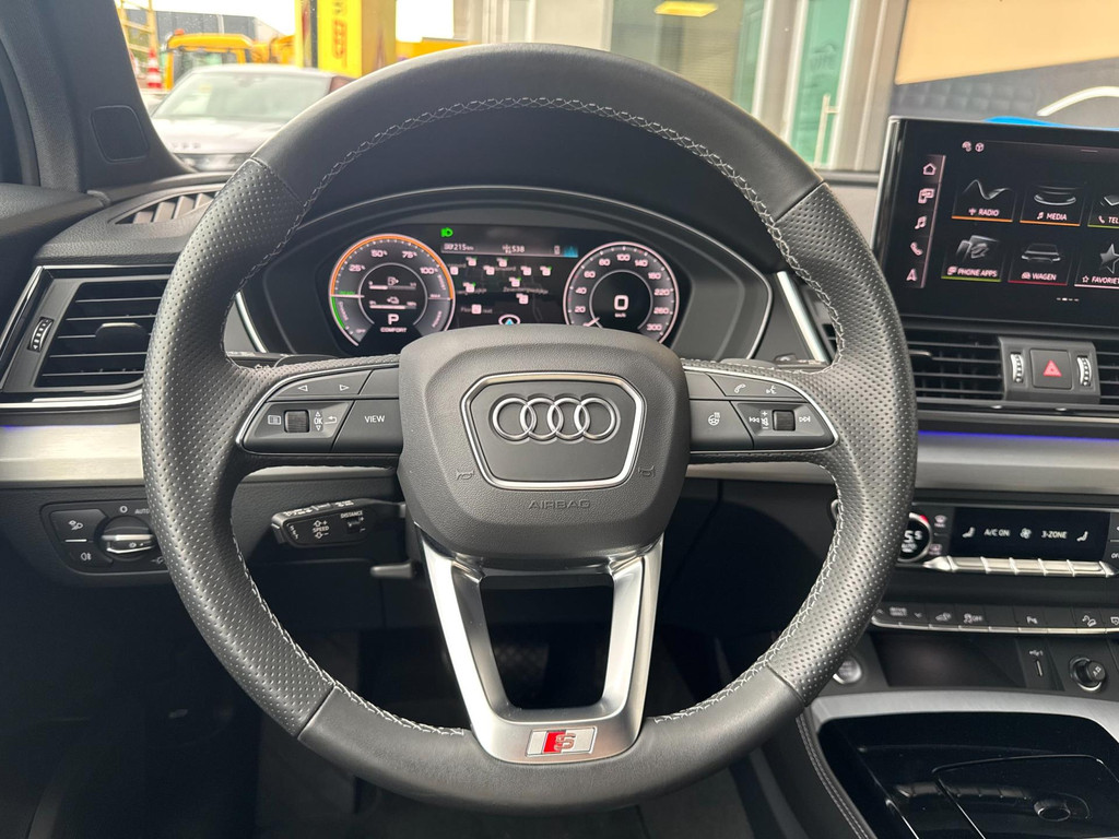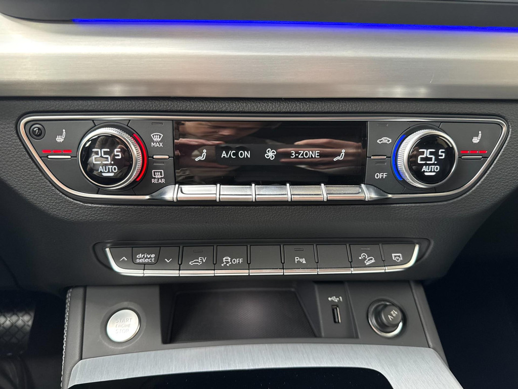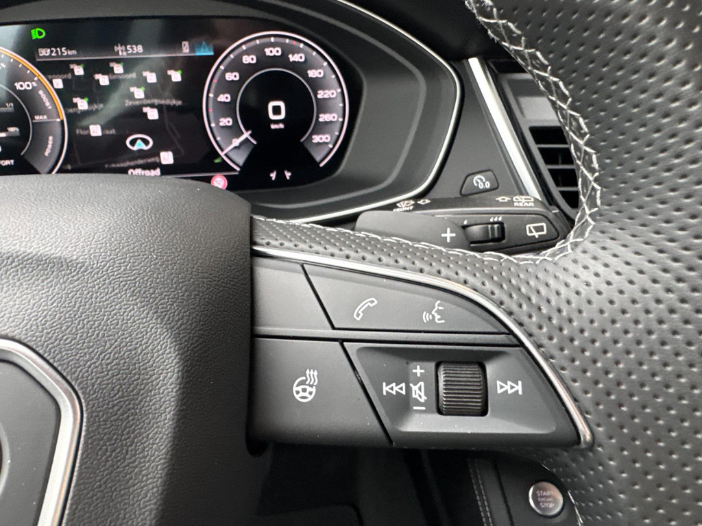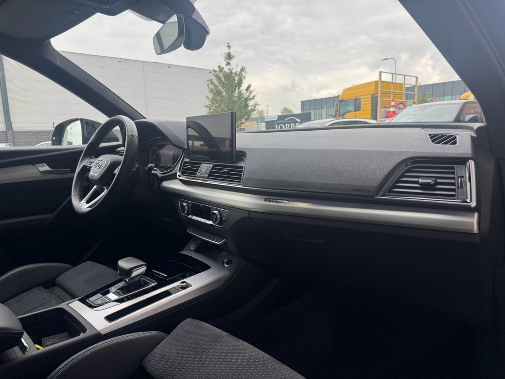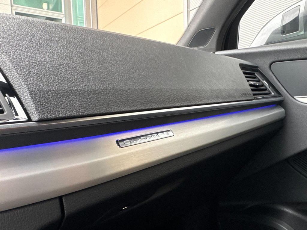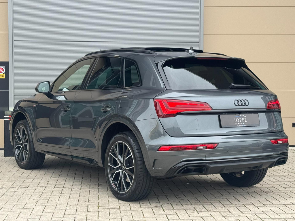 Dynamische styling, zorgvuldig afgewerkt met fraaie materialen en ontworpen met oog voor detail. De Audi Q5 is van binnen en van buiten een toonbeeld van Duits design. S-Line styling vertegenwoordigt de overtreffende trap in smaakvolle sportiviteit. Een krachtige motor geeft deze auto zijn sportieve prestaties. Lederen bekleding is in deze rijk uitgeruste auto ook aanwezig. 's Winters komen de verwarmbare voorstoelen heerlijk van pas. Rijden met pit? Geen punt! De sportstoelen geven steun en stevigheid! Dankzij het elektrisch bediende glazen panoramadak lijkt het of u altijd met open dak rijdt. Een praktische extra is de elektrisch bedienbare achterklep die opent en sluit met een druk op de knop. Perfect zicht bij nacht en slecht weer? Dat leveren de koplampen met matrix LED-verlichting. De uitmonstering van deze auto wordt gecompleteerd door onder meer 20 inch lichtmetalen velgen, halflederen bekleding, warmtewerend glas, in delen neerklapbare achterbank, LED-achterlichten en verstelbare lendensteunen.