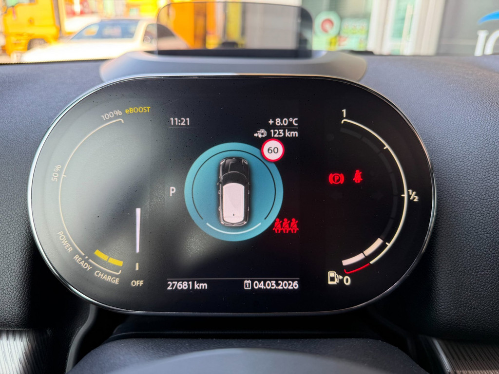 De automatische veiligheidssystemen in deze Mini fungeren als een extra paar ogen. En dat niet alleen, ze kunnen ook actief ingrijpen, om zo u en uw passagiers te beschermen. Hou zicht op de weg en check tegelijk de functies op het dashboard: dat kan, dankzij de head-up display. Tijdens de rit hebt u altijd een bijrijder, want de verkeersbord-detectie leest de borden langs de weg en projecteert ze voor u op het instrumentarium. Om te voorkomen dat u tijdens lange ritten achter het stuur in slaap valt, is deze auto voorzien van vermoeidheidsherkenning. Bovenop deze veiligheidsfeatures heeft deze Mini bovendien accident avoidance system, hill hold functie en bandenspanningcontrolesysteem.