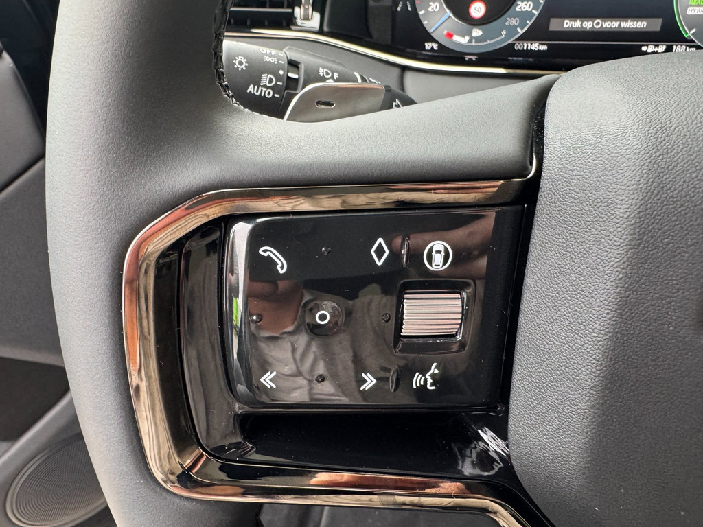 De slimme lay-out van het digitale dashboard zorgt voor een uitstekend overzicht onderweg. Het gebruik van de 360 graden camera op deze auto vergemakkelijkt het parkeren aanzienlijk, vooral in krappe ruimtes. Met adaptive cruise control houdt deze auto automatisch afstand tot uw voorligger. Ook het geluid aan boord is top-of-the-line. Het high performance audiosysteem levert superieure prestaties. Aan boord bevindt zich een draadloze telefoonlader. Geen kabels of snoertjes - opladen maar! U bent in deze Land Rover ook voorzien van navigatiesysteem, achteropkomend verkeer waarschuwing, electronic climate control, DAB ontvangst, regensensor en keyless entry.