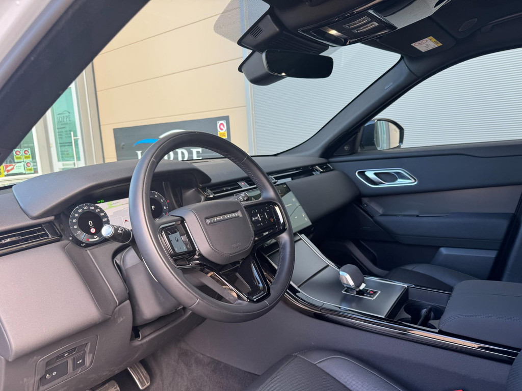 Laat u verleiden door de stijl en de prestaties van deze Land Rover Range Rover Velar. Trap het gaspedaal in en voel de geweldige acceleratie van de viercilinder motor van deze sportwagen. De leren bekleding maakt het interieur helemaal af! Neem plaats op de comfortabele stoelen. Dankzij de elektrische bediening en het geheugen is het eenvoudig om hierin de beste zitpositie te vinden. Ongeacht hoe koud het buiten is, het verwarmbare stuurwiel samen met de verwarmbare voorstoelen en achterbank, zorgt ervoor dat iedereen in de auto zich snel opwarmt. Wat een licht geeft dat glazen elektrisch bedienbare panoramadak. Een praktische extra is de elektrisch bedienbare achterklep die opent en sluit met een druk op de knop. De koplampen zijn voorzien van matrix LED-verlichting waarmee u aanzienlijk verder kan kijken in het donker. Het systeem past zelf de lichtstraal aan op het moment tegenliggers verblind kunnen worden. Bij de uitrusting van deze auto horen onder meer 22 inch lichtmetalen velgen, geluidsisolerende ramen, aluminium dakrailing, dakspoiler, elektrisch inklapbare buitenspiegels en in delen neerklapbare achterbank.