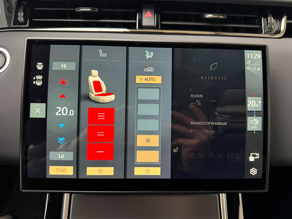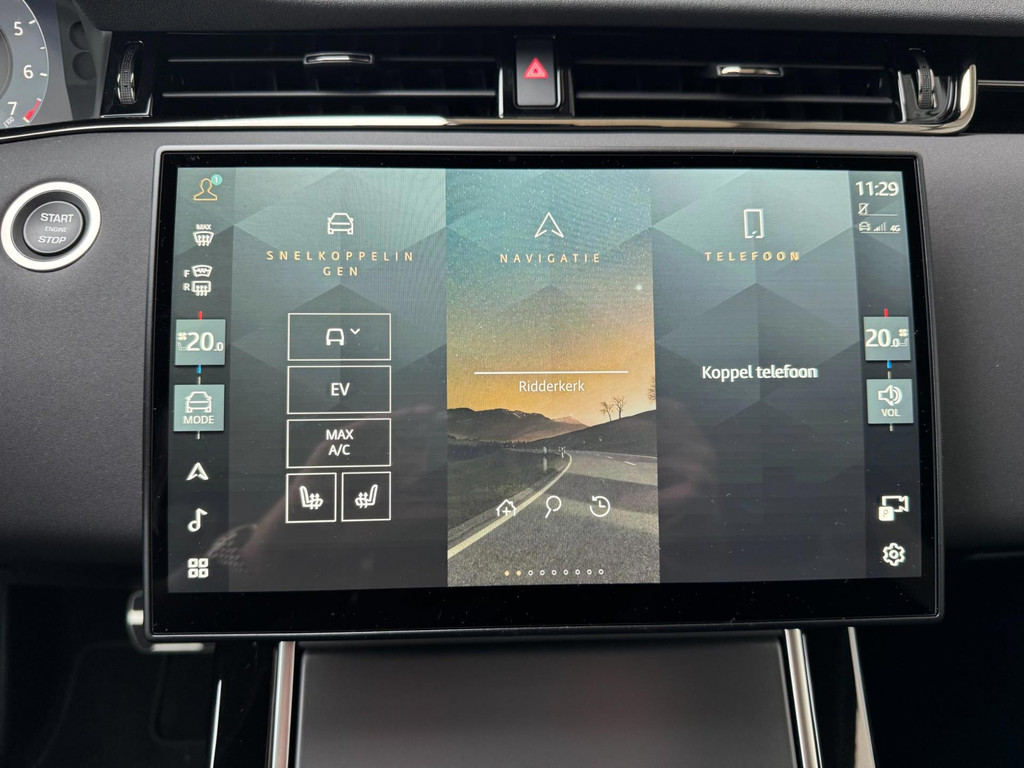 Pas de interface van uw cockpit moeiteloos aan. Het is mogelijk door het digitale dashboard in deze auto. Een vergeten muurtje, een verborgen paaltje? Dat gebeurt niet meer, dankzij de achteruitrijcamera. Adaptive cruise control is veilig en comfortabel. De snelheidsregelaar houdt automatisch afstand tot het voertuig dat voor u rijdt. De hoorbare sensatie van het high performance audiosysteem is een ervaring op zich. Klik de smartphone in de houder en de draadloze telefoonlader zorgt voor een volle accu. Ook is de Land Rover uitgerust met: navigatiesysteem, achteropkomend verkeer waarschuwing, electronic climate control, DAB ontvangst, regensensor en keyless entry.